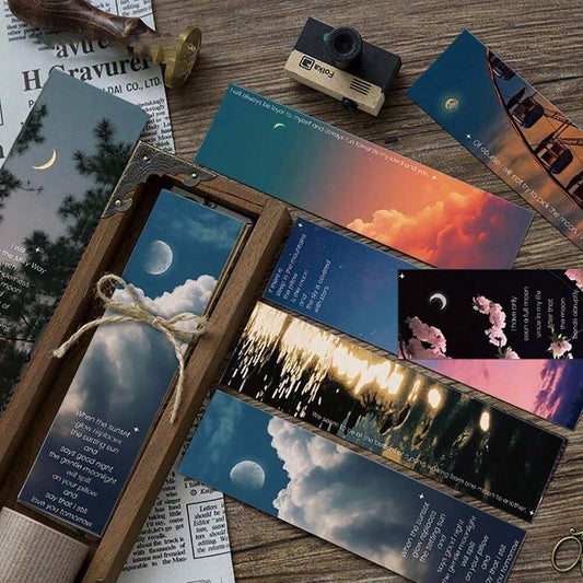 30 Pezzi/libro Luna E Nuvole E Tramonto Ed Estetica Paesaggio E Cielo Segnalibro A Tema Mini Scheda Messaggio Per Artigianato Fai Da Te