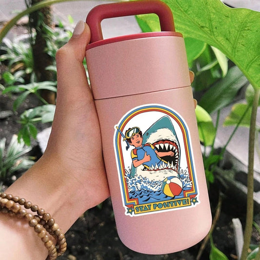 Adesivo in vinile "Rimani positivo", adesivo divertente e carino di uno squalo che fa immersioni, adesivo umoristico e impermeabile per borracce, Kindle, laptop, libri, bicchieri, auto, diari e uso all'aperto, rimovibile