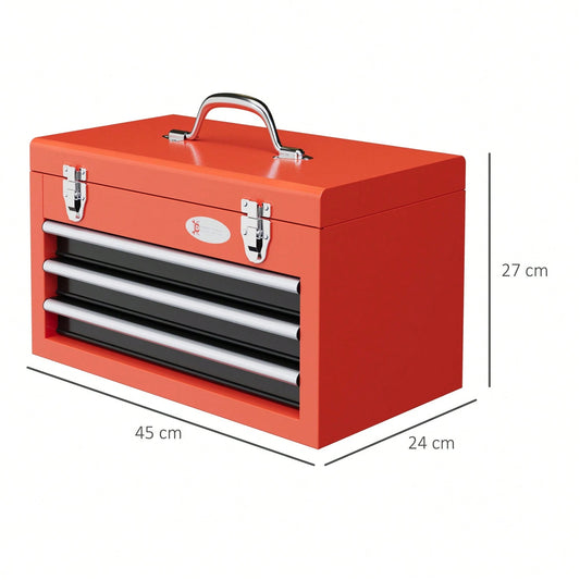 Durhand Valigetta Porta Utensili a 3 Cassetti, Cassetta Portautensili Vuota in Acciaio con Maniglia, 45x24x27cm, Rosso