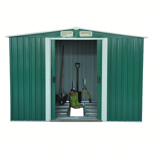 Outsunny Casetta da Giardino Porta Utensili in Lamiera di Acciaio, Capanno da Giardino in Acciaio con Base e Porte Scorrevoli, 258x206x178cm, Verde