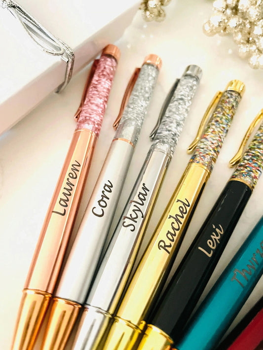 Penna a sfera con liquido glitterato personalizzato con testo/logo, inchiostro a base d'olio, penna di lusso alla moda, adatta come bomboniera per matrimoni, regali per il ritorno a scuola