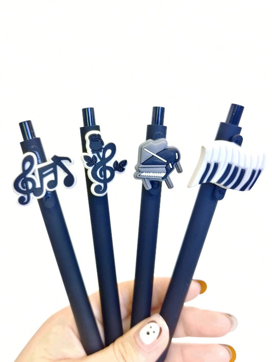 Penne a sfera retrattili della serie Note Musicali, punta media, fusto in plastica nera con adesivi in PVC morbido a tema musicale casuale, forniture scolastiche, per il ritorno a scuola