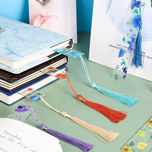 Pezzi Segnalibri in resina con fiori trasparenti, segnalibri floreali per donne, segnalibri carini con fiori e nappe, regali di Natale e riempitivi per calze per donne