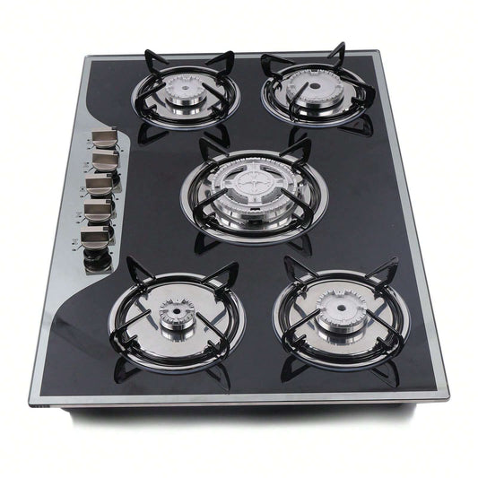 Piano cottura a gas LPG/NG da incasso con 5 bruciatori, piano cottura a gas in vetro temperato con 5 bruciatori in acciaio inossidabile a gas LPG da incasso (A-30,3 pollici)