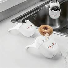 1 pezzo portaspongia in silicone a forma di gatto carino, con fori di drenaggio, portaspongia decorativo e durevole per risparmio di spazio in bagno e cucina, organizer e contenitore per il bagno