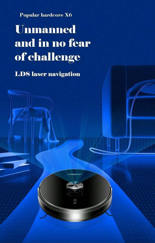 Robot aspirapolvere Liectroux X6, aspirazione 6500Pa, navigazione laser LDS, serbatoio dell'acqua da 235 ml, contenitore della polvere da 400 ml, 5 mappe memorizzate, batteria da 2600 mAh