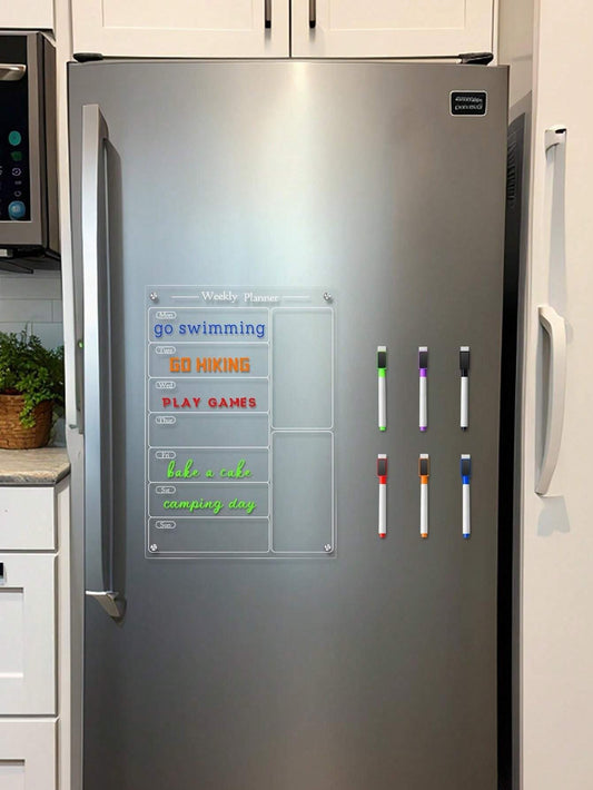 Set di lavagna magnetica cancellabile per frigo con planner, 6 pennarelli per lavagna, planner settimanale 3D in acrilico magnetico, adesivo per frigorifero