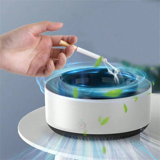 1 posacenere intelligente auto-estinguente con purificatore d'aria a ioni negativi, posacenere rotondo multifunzionale in plastica per uso domestico, ufficio e all'aperto - richiede 2 batterie AA (non incluse)
