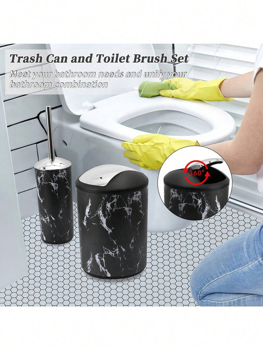 5 pezzi/9 pezzi Set di accessori per il bagno con motivo marmorizzato, inclusi portaspazzolino, dispenser di sapone, portasapone, bicchiere, bottiglie ricaricabili