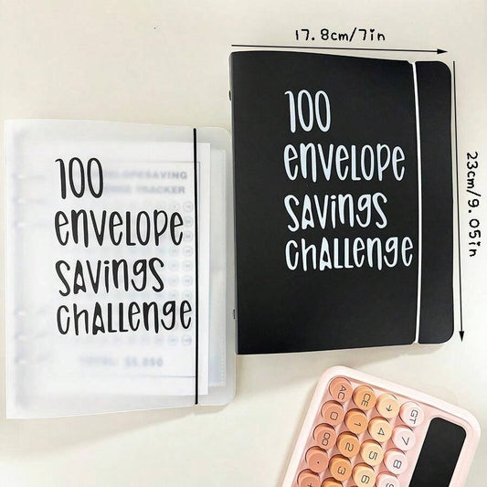Set di materiale scolastico per il rientro a scuola: un taccuino con 100 tasche numeriche per la sfida di risparmio in busta, un binder A5 con 100 tasche a numero, un taccuino con copertina in PP per la gestione del budget