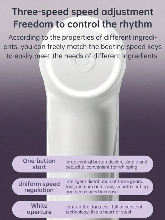 Frullatore portatile ricaricabile senza fili - Frusta a 3 velocità senza fili per cucinare, montare la panna e fare il pane, design compatto con spegnimento automatico, ideale per gli amanti della pasticceria