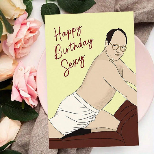 Biglietto d'auguri per compleanno divertente e spiritoso - "Buon compleanno sexy" - con busta, stampa di alta qualità, 16x11 cm, biglietto divertente con illustrazione di un uomo per famiglia e amici