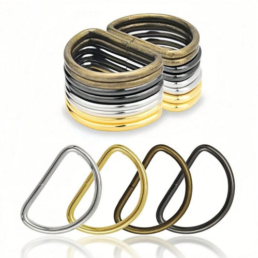 20 pezzi / confezione Anelli a D in metallo accessori per cinghie di borse a mano, cinture, borse, scarpe, cucito fai da te, accessori, dimensioni 10/12/15/20/25/32/38 mm