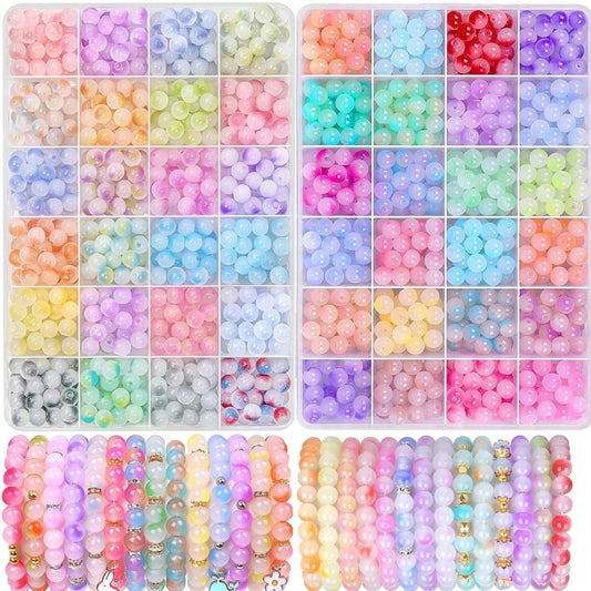 360 pezzi di perline di vetro di colori assortiti, per la realizzazione di gioielli fatti a mano come bracciali, collane, orecchini e lavoretti artigianali (colori casuali)