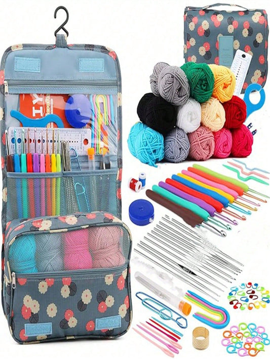 Set all'uncinetto, 108 pezzi Kit di avviamento all'uncinetto fai-da-te con tutti i materiali, set portatile di attrezzi per lavorare a maglia con filati, attrezzi di base per uncinetto fai-da-te con filati, kit per hobby creativi