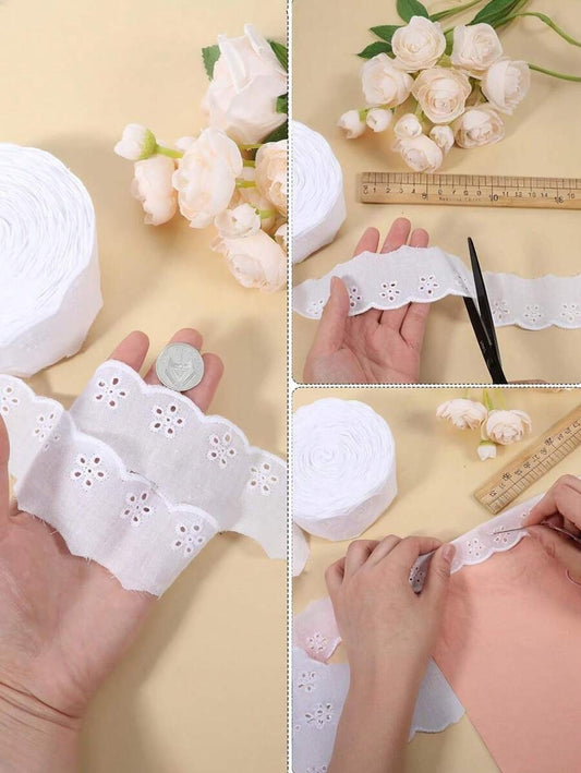 metri di nastro in pizzo bianco con ricamo floreale, bordo ondulato, larghezza 2,5/4,2 cm, per cucire abiti, vestiti, borse, accessori per animali domestici