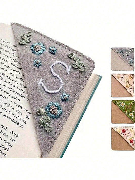 1 pezzo, Segnalibro angolare personalizzato con ricamo a mano, 26 lettere ricamate a mano su feltro, segnalibro con ricamo floreale carino, regalo significativo per gli amanti della lettura, ideale per il ritorno a scuola