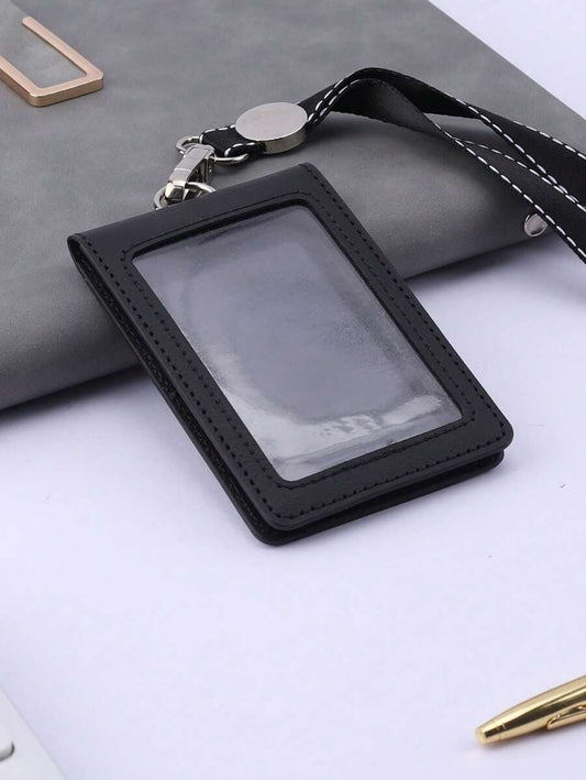 Cordino, Portacarte da lavoro aziendale minimalista, Portacarte in PU, Portacarte per tessera studente, Cordino in raso, Portacarte a doppio strato