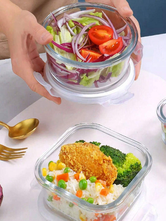 1/2 Porzione Contenitore per Alimenti con Coperchio, Lunch Box in Vetro Microonde-Friendly, Contenitore per Pasti per Ritorno a Scuola