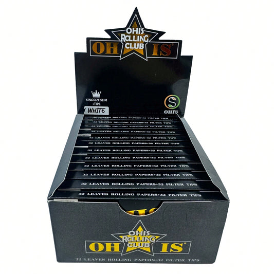 Cartine Arrotolabili in Polpa di Legno Sbiancato 110 mm con Filtri Bianchi, Carta da Rollare Lenta. Libretto Manuale per Sigarette Arrotolate, Accessori per Fumatori. 1 Scatola Contiene 32 Cartine + 32 Filtri.