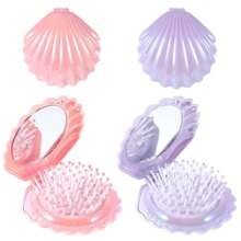 Spazzole per capelli da viaggio pieghevoli con finitura metallica e brillantezza, con specchio, a forma di conchiglia, portatili, compatte, mini, con funzione massaggiante, adatte per uomo e donna