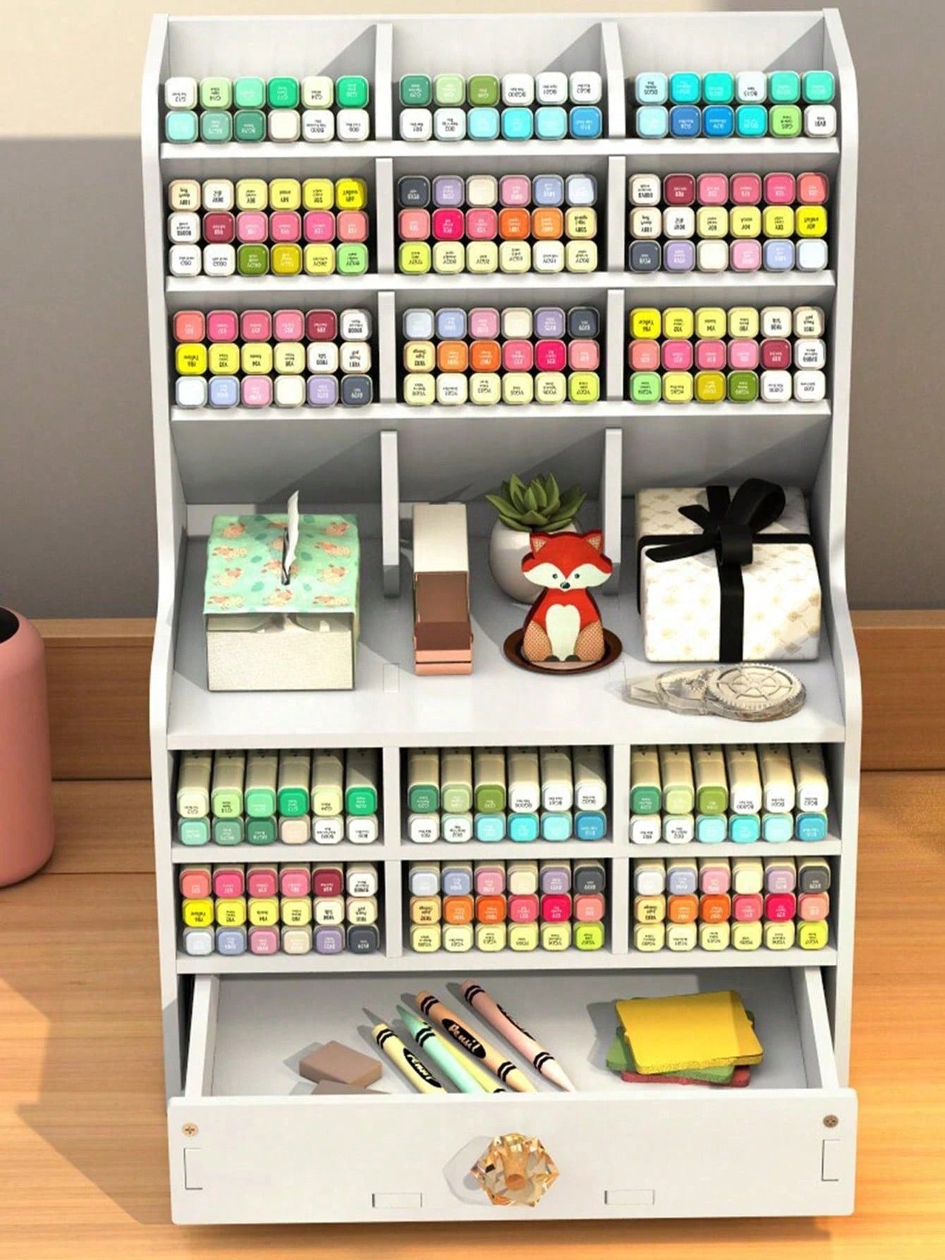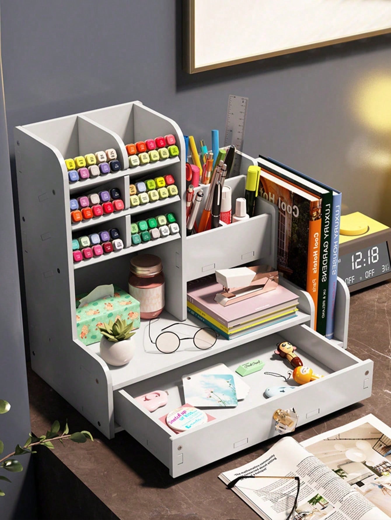 Portaoggetti da scrivania multifunzionale, portapenne fai-da-te, contenitore per articoli di cartoleria, grande capacità, adatto per studenti, design in legno e plastica, adatto per compleanni, lauree, feste dei single